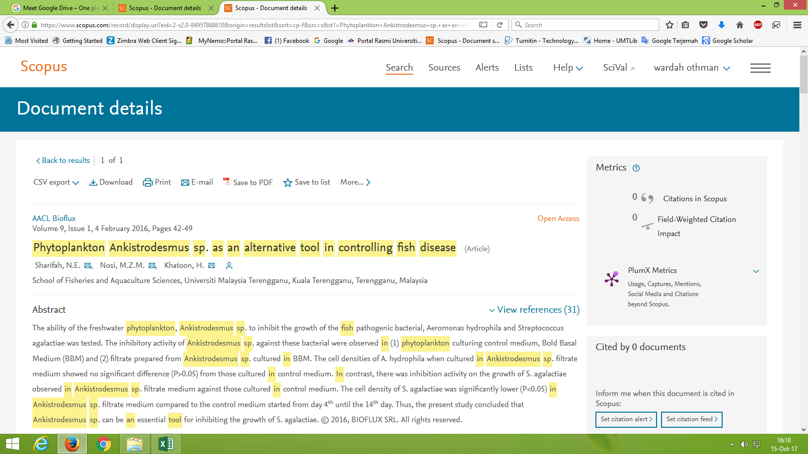 http://umt-ir.umt.edu.my:8080/handle/123456789/5471| Title: | Phytoplankton Ankistrodesmus sp. as an alternative tool in controlling fish disease |