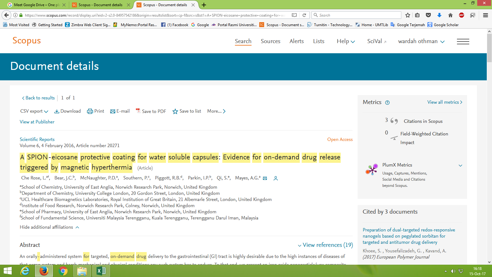 http://umt-ir.umt.edu.my:8080/handle/123456789/5506| Title: | A SPION-eicosane protective coating for water soluble capsules: Evidence for on-demand drug release triggered by magnetic hyperthermia |