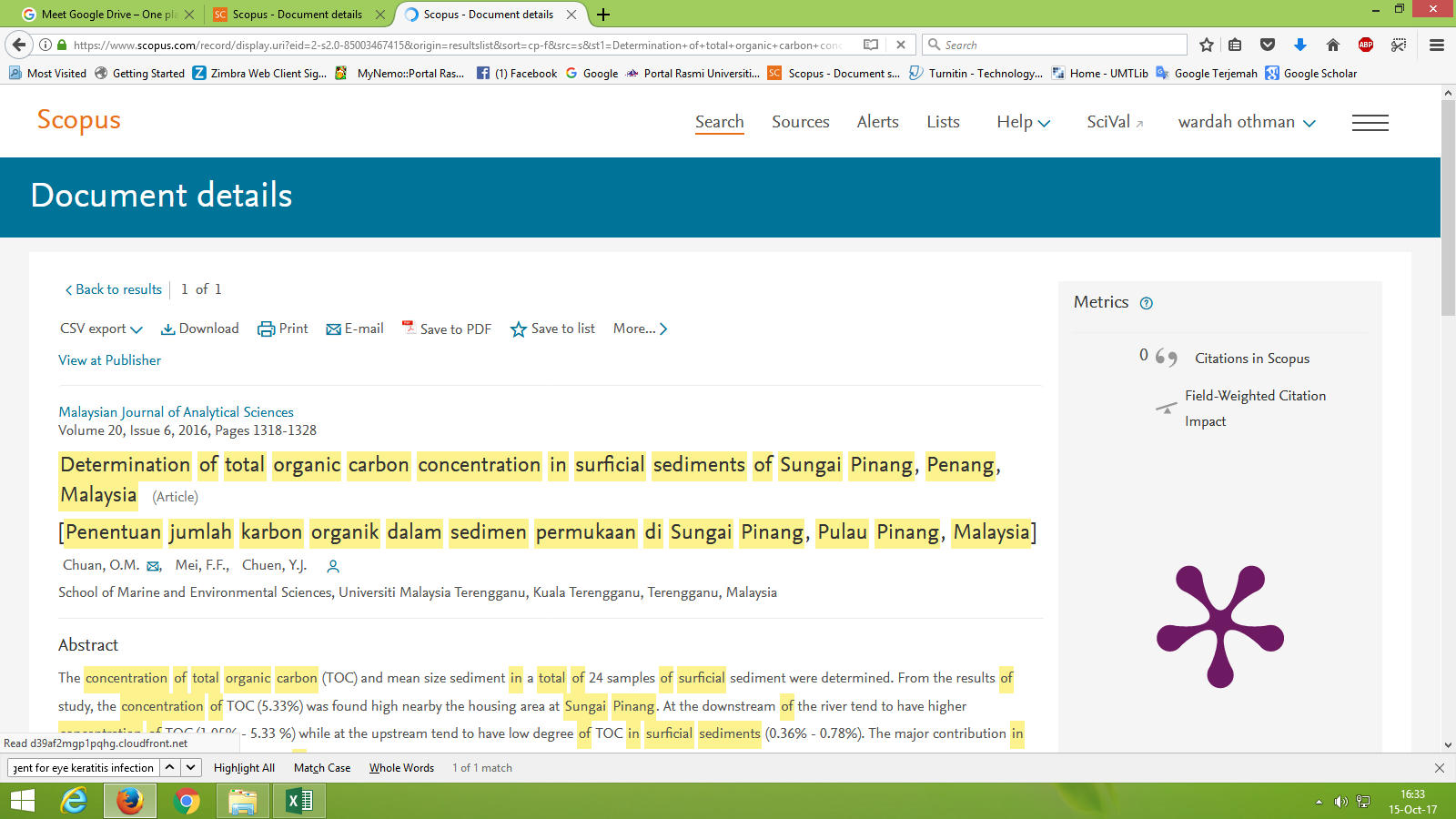 | Keywords: | Total Organic Carbon Mean Size Sediment Surficial Sediments Sungai Juru Sungai Tengah |